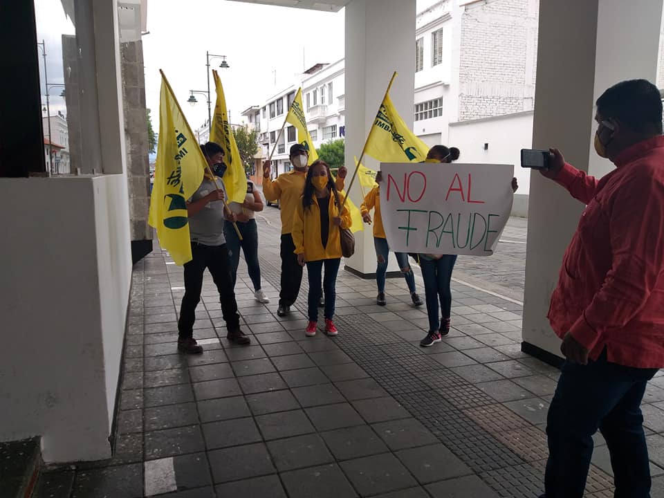 El Partido Adelante ecuatoriano Adelante hizo este lunes 31 de agosto un acto de protesta en las afueras del Municipio de Ibarra en contra de la presidenta del CNE, Diana Leer más